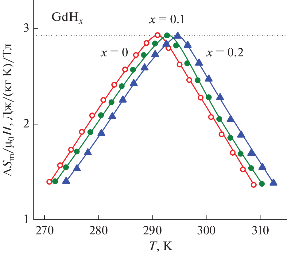 A study of the magnetocaloric characteristics of rare-earth magnets was carried out. There were studied a systems Gd–H, (Gd,R)Ni–H containing hydrogen (R is a rare earth metal); system RCo2–H with the structure of Laves phases; and systems without hydrogen, such as RTX intermetalic compounds (T = Mn, Fe, Co; X = Si), R2(Fe,T)17 compounds (T = Al), which have a magnetic compensation point and exhibit an alternating magnetocaloric effect (MCE). The MCE was measured by the direct method and calculated indirectly from the field dependences of the magnetization. The main regularities are established and the specific features of the formation of magnetocaloric properties are revealed depending on the composition and structure.