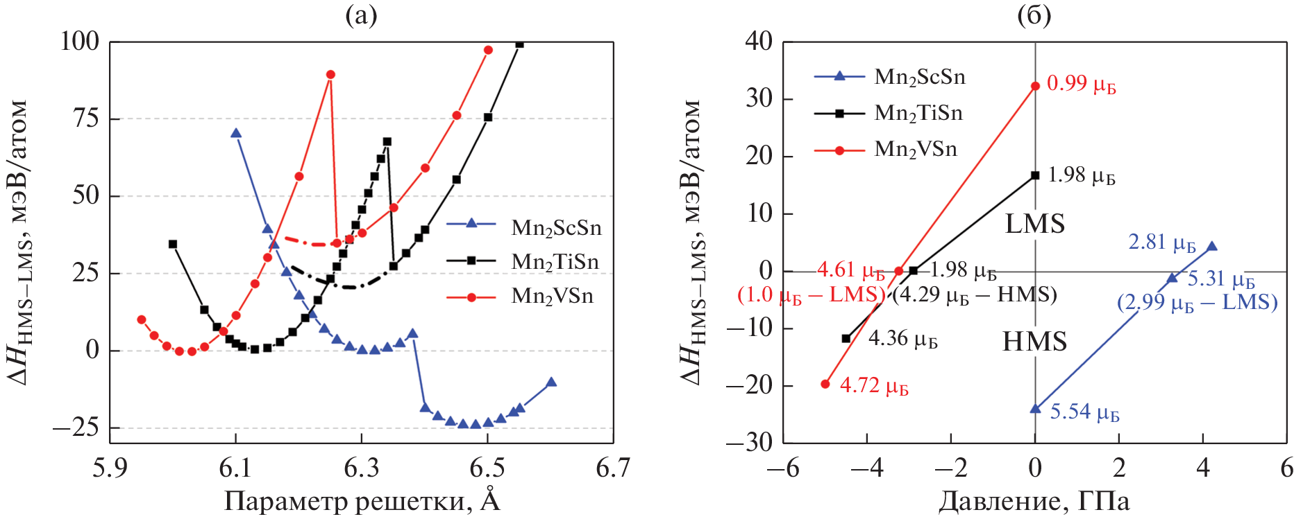 - Sokolovskiy V., Zagrebin M., Baigutlin D., Buchelnikov V. Ab initio prediction of coexistence of two magnetic states in Mn2YSn (Y = Sc, Ti, and V) Heusler alloys under applied pressure // Comput. Mater. Sci. 2023. V. 228. P. 112 365.