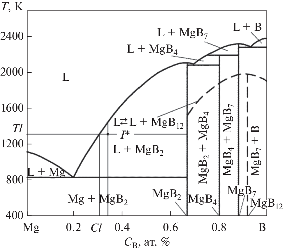 The interaction of components during high-temperature annealing of pressed magnesium and boron powders during the production of the superconducting compound MgB2 is considered in works using standard synthesis technology and hot gas-static pressing technology. In a computer model of crystallization of a binary alloy, the influence of the diffusion of components in the region of the interphase boundary during crystal growth on the morphology of dissipative structures formed during phase transformation was studied. An analysis of the conditions and mechanism of the formation of a “layered” structure that appears during the crystallization of MgB2 from a magnesium melt in the (Mg–B) system has been carried out.