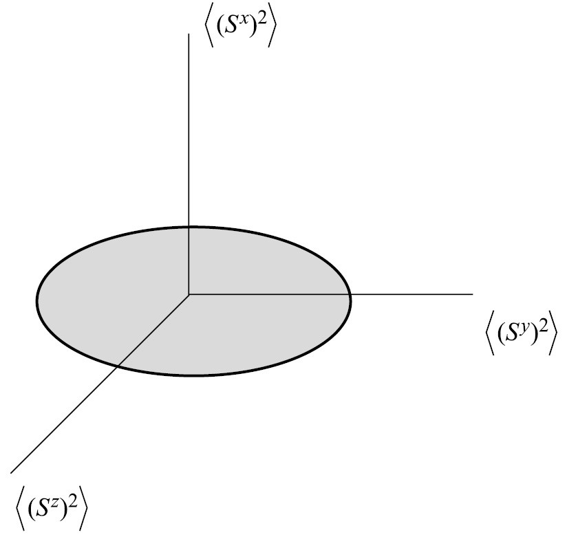 Как видно из соотношений (2), геометрическим образом нематической фазы является бесконечно тонкий диск, ориентированный в плоскости ZOY в спиновом пространстве (рис. 1). Вектор-директор в этом случае ориентирован по оси OX, т.е. перпендикулярен плоскости нематического диска: