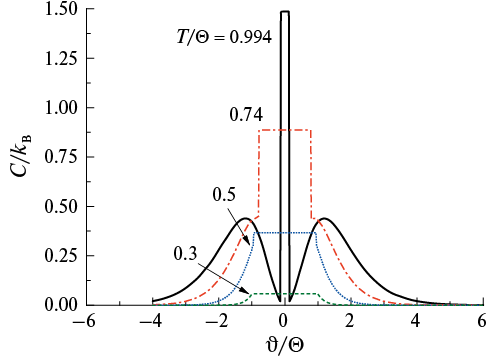 Рис. 3. Температурная зависимость теплоемкости при различных значениях ϑ/θ.