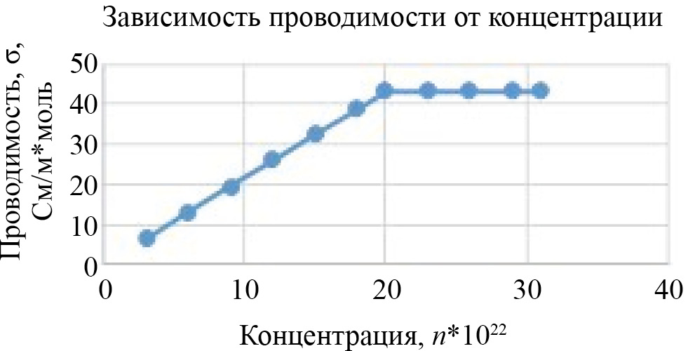Рис. 13. Зависимость электропроводимости от концентрации носителей заряда.