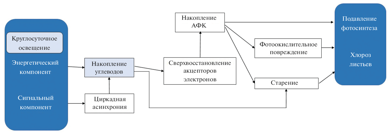- Velez-Ramirez A.I., van Ieperen W., Vreugdenhil D., Millenaar F.F. Plants under continuous light // Trends Plant Sci. 2011. V. 16. P. 310. https://doi.org/10.1016/j.tplants.2011.02.003