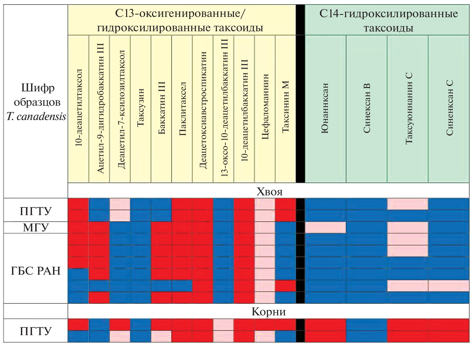 - van Rozendaal E.L.M., Kurstjens S.J.L., van Beek T.A., van den Berg R. G. Chemotaxonomy of Taxus // Phytochemistry. 1999. V. 52. P. 427. https://doi.org/10.1016/S0031-9422(99)00229-0