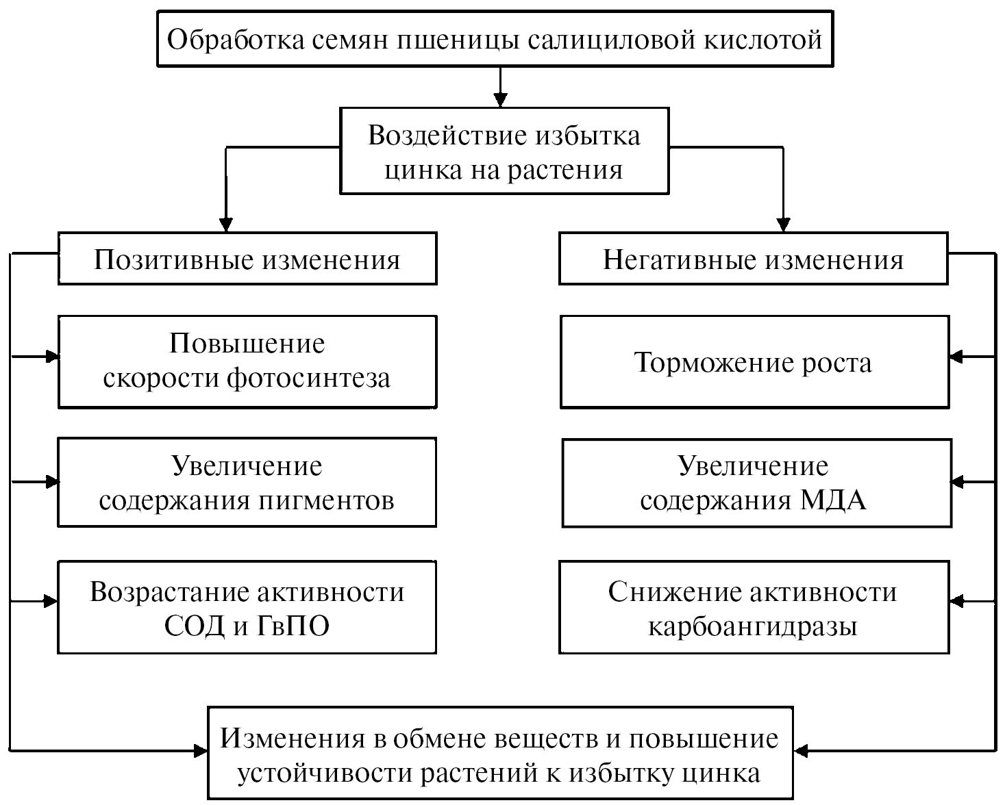 Наконец, следует сказать, что реальная картина происходящих под влиянием СК изменений в растениях, находящихся в условиях избытка цинка во внешней среде, является еще более сложной, т.к. здесь мы не обсуждаем вовлеченность в защитно-приспособительные реакции растений других гормонов, участие генетической системы и вклад структурных (ультраструктурных) изменений. Но без ее всестороннего изучения и более глубокого понимания невозможна разработка эффективных методов и способов повышения устойчивости и продуктивности растений, культивируемых в разных агроклиматических условиях.