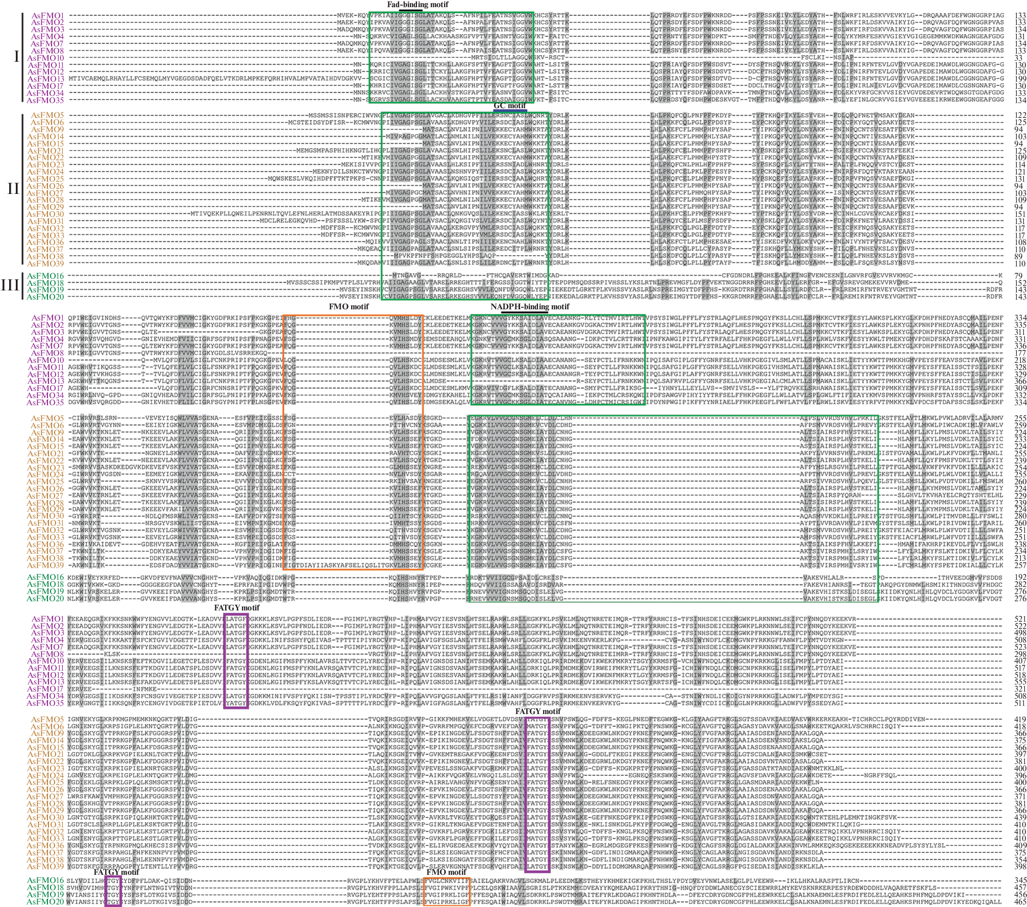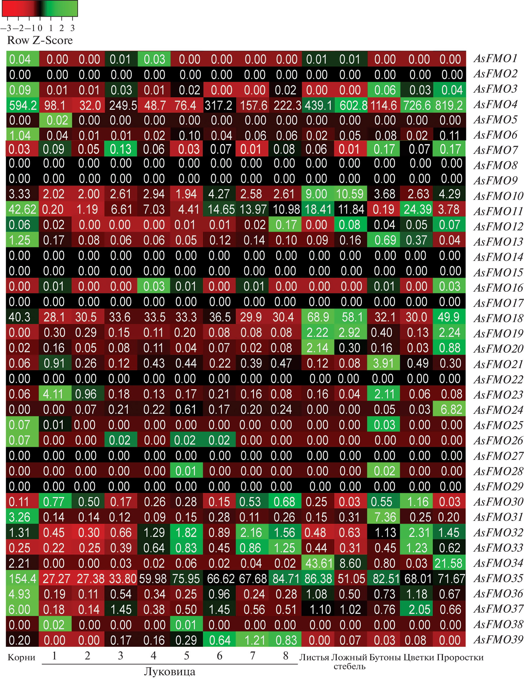 В настоящей работе в геноме чеснока Allium sativum L. идентифицировано 39 генов флавинсодержащих монооксигеназ. Показано разделение AsFMOs на три филогенетические клады, ассоциированные с N-оксигенированием (22 белка), биосинтезом ауксинов (13 белков) и S-оксигенированием (4 белка). В аминокислотных последовательностях AsFMOs найдены мотивы связывания с FAD и NADPH, FMO-идентифицирующий мотив и FATGY-мотив. Показано, что транскрипты AsFMOs присутствуют во всех органах чеснока с максимумом в корнях, листьях, цветоносе и воздушных луковицах. В ответ на заражение патогенным грибом Fusarium proliferatum выявлена дифференциальная экспрессия генов клады I (AsFMO4, AsFMO11, AsFMO12 и AsFMO35) в корнях чеснока сортов Сармат и Стрелец, контрастных по устойчивости к фузариозной гнили. При этом экспрессионный ответ гена AsFMO18 клады III, вовлеченного в биосинтез аллиина, идентичен для обоих сортов, независимо от их устойчивости/восприимчивости к фузариозу. Это предполагает совместное участие генов клад I и III в ответных реакциях растений на заражение патогенами. Проанализирована кодирующая и регуляторная последовательности гена AsFMO35 у сортов Стрелец и Сармат. Показано, что промоторная область гена AsFMO35 отличается присутствием АБК-ассоциированного цис-регуляторного элемента ABRE у сорта Стрелец, восприимчивого к фузариозной гнили.