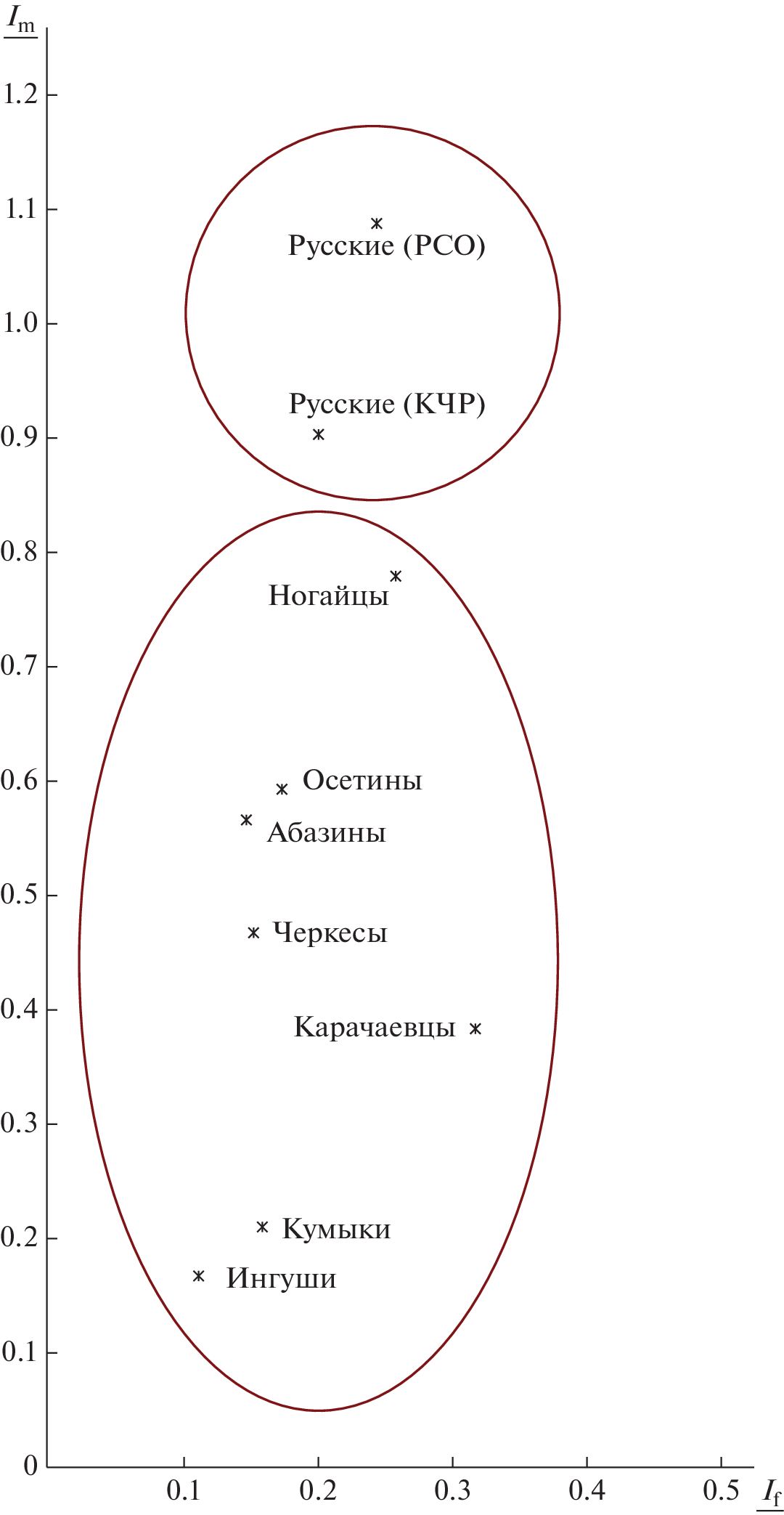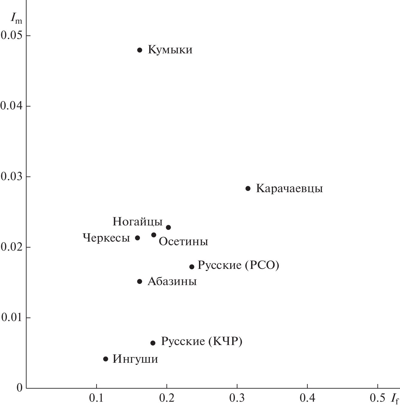 In accordance with the Protocol of the genetic and epidemiological survey of the population, the study of the population-genetic characteristics of the Ingush of North Ossetia-Alania was carried out. The extended nature of reproduction was found (3.62). The Crow index is calculated in two ways – the classical one and according to the method proposed by N.H. Spitsina, which takes into account not only pre-productive, but also prenatal losses. The age parameters of reproduction are within the limits of those for other surveyed populations. A graphical comparative analysis of the components of the Crow’s index obtained by different methods is carried out. Low endogamy was revealed (0.13), positive but low ethnic marital assortativness (1.96). The scheme of the surname landscape shows two clusters corresponding to the Ingush and Ossetian populations.