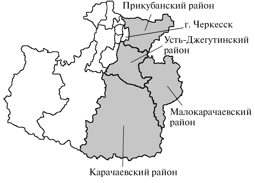 Карачаевцы – тюрко-язычный народ Северного Кавказа, коренной этнос Карачаево-Черкесии, составляющий более 40% населения республики (194 тыс. человек) [1], компактно проживают в четырех районах (Карачаевском, Малокарачаевском, Прикубанском, Усть-Джегутинском), в которых сотрудниками лаборатории генетической эпидемиологии ФГБНУ “МГНЦ” проведено комплексное генетико-эпидемиологическое исследование. Карачаевцы принадлежат к кавкасионскому антропологическому типу, говорят на карачаево-балкарском языке кыпчакской группы тюркской языковой семьи [2].