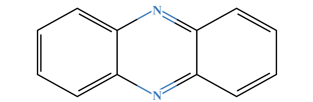 Бактерии рода Pseudomonas способны синтезировать широкий спектр вторичных метаболитов, таких как витамины, токсины, пигменты и антибиотики. Среди соединений последней группы особое место занимают феназины. Большинство феназиновых соединений – твердые, кристаллические окрашенные вещества, обладающие слабыми основными свойствами. По своей химической структуре они относятся к ароматическим гетероциклам. На сегодняшний день известно около 200 природных соединений, основой структуры которых является феназиновое ядро. Три конденсированных ароматических кольца, составляющих основу ядра, связываются с разнообразными заместителями, формируя большое количество производных, обладающих различными физическими и химическими свойствами и биологическими активностями (рис. 1). Благодаря наличию ароматических колец и атомов азота феназины легко вступают в окислительно-восстановительные реакции, являясь как донорами, так и акцепторами электронов [4, 5].