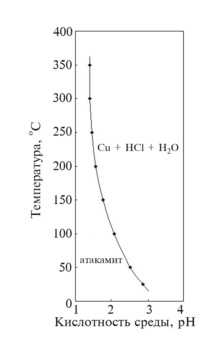 Рис. 8. Диаграмма стабильности атакамита в системе Cu−О−Cl−H в условиях повышенной кислотности.