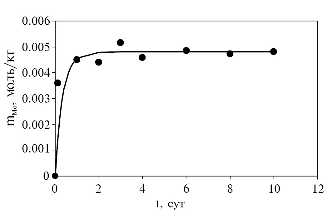 Время установления равновесия в системе было определено с помощью серии кинетических опытов при 155 °С (рис. 1). Кинетическая серия показала, что равновесие устанавливается за 7 суток при данных условиях.