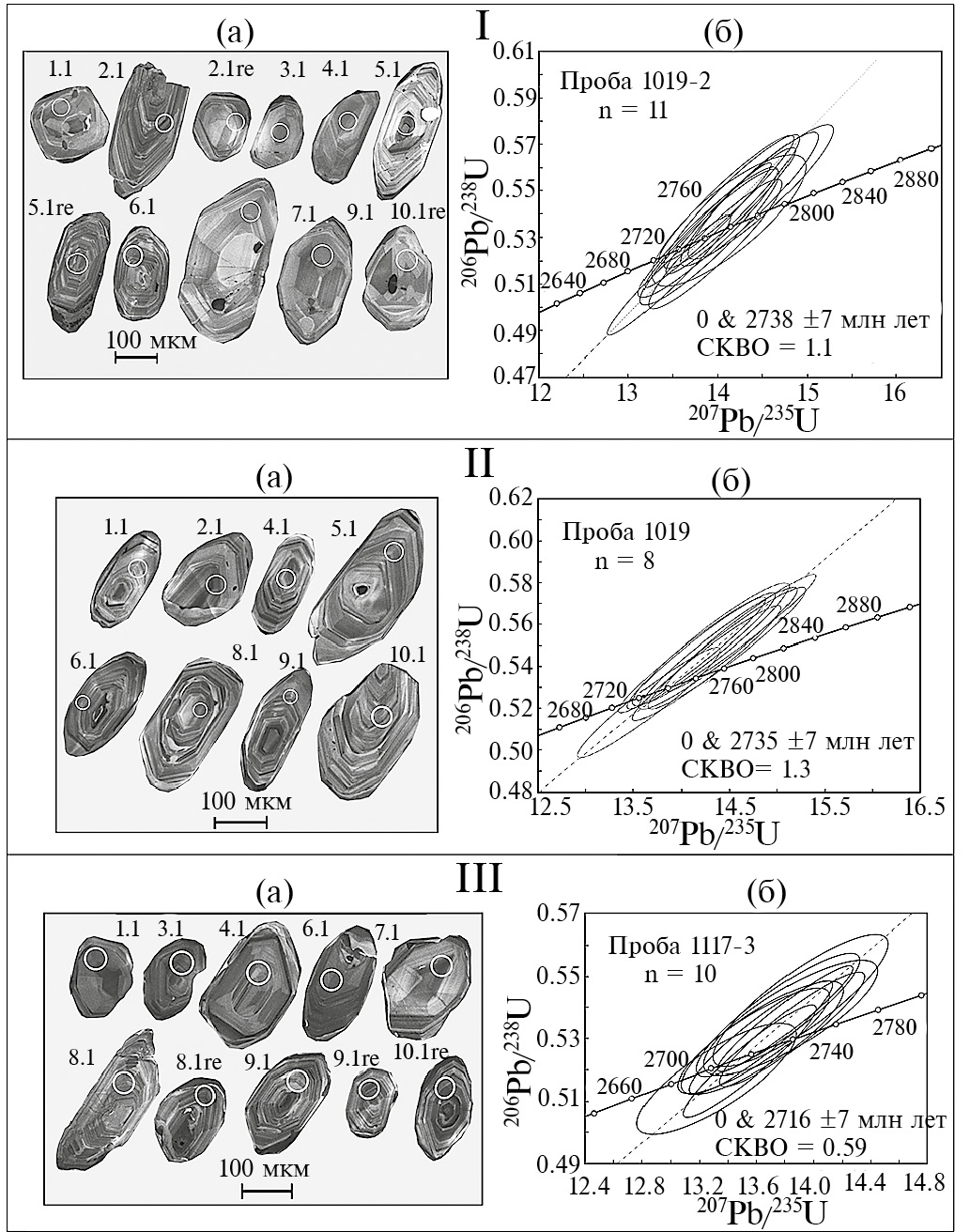 Перечисленные значения возраста согласуются с уже имеющимися для вулканитов этой толщи возрастами: андезитового метатуфа 2735 ± 20 млн лет (Милькевич и др. 2007) и метаандезита 2720 ± 20 млн лет (Левченков и др., 2003).