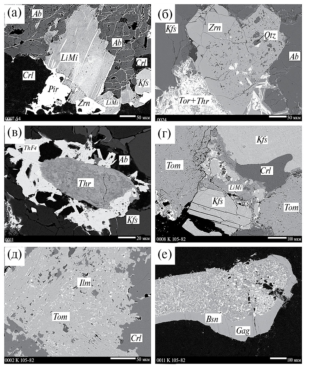 Нами были изучены парагенезисы наиболее представительных образцов редкометальных криолитсодержащих гранитов Зашихинского, Улуг-Танзекского и Катугинского месторождений. Данные большинства работ, полученные при исследованиях этих трех месторождений, также были приняты во внимание.