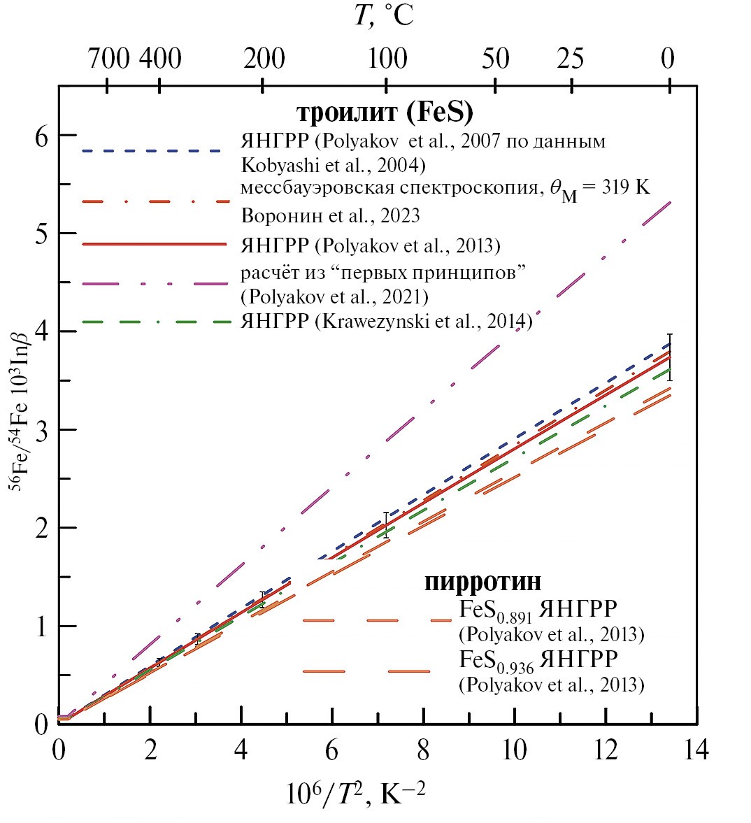 - Voronin M.V., Polyakov V.B., Osadchii E.G., Sipavina L.V. (2023) Equilibrium iron isotope factors for troilite from mössbauer spectroscopy data: A new evaluating technique. Experiment in GeoSciences 29, 70–74.