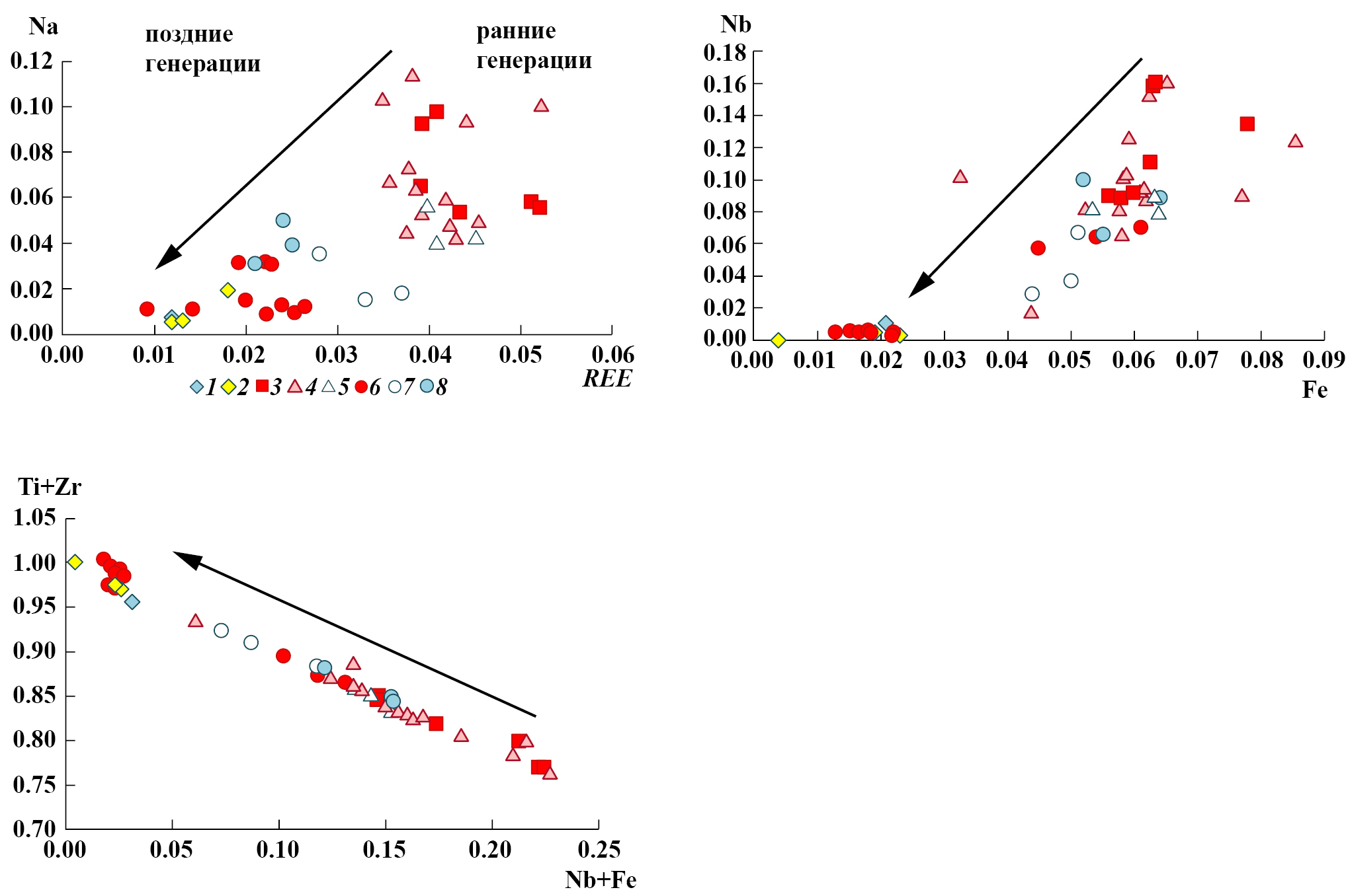 Особенностью эволюции кальциртита и перовскита является обогащение их ранних генераций Nb, Zr, REE (цериевая группа), что объясняется высокими Kd этих элементов в равновесиях карбонатитовый расплав – минерал. В ходе этого процесса расплав теряет элементы высоких зарядов и более поздние генерации перовскита и кальциртита обедняются эти элементами.