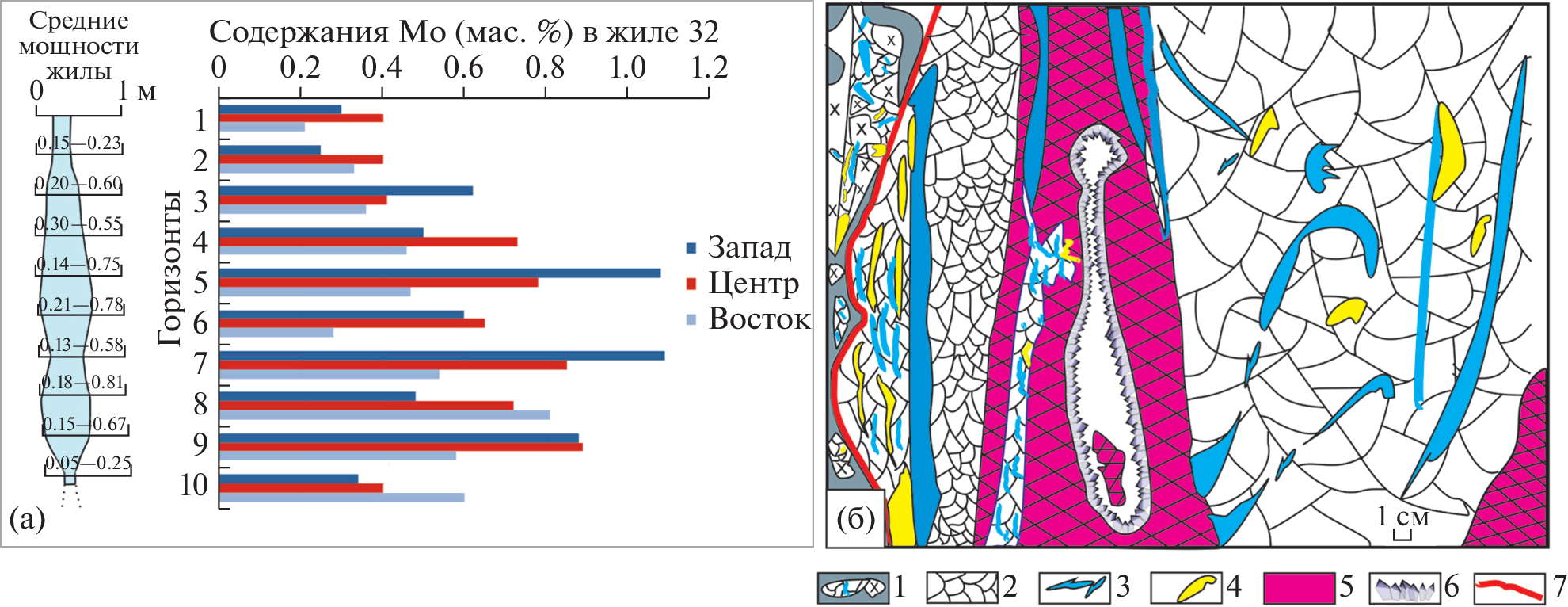 Structure, Mineralogical, and Geochemical Features and Formation Conditions of Ore Veins in the Mo Porphyry Shakhtama Deposit (Eastern Transbaikalia)