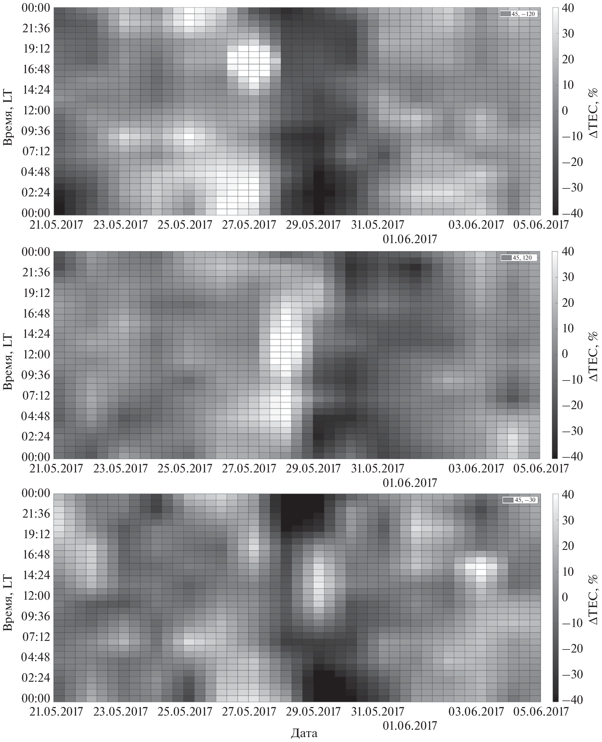 result, it was possible to create a generalized global “pattern” of a geomagnetic storm in the Earth’s ionosphere