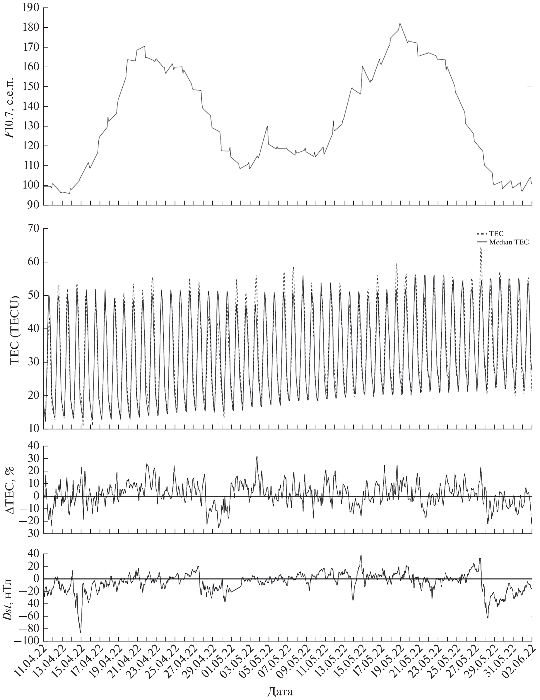activity according to the solar flux F10.7 is considered. As a source of information, data on total electron content