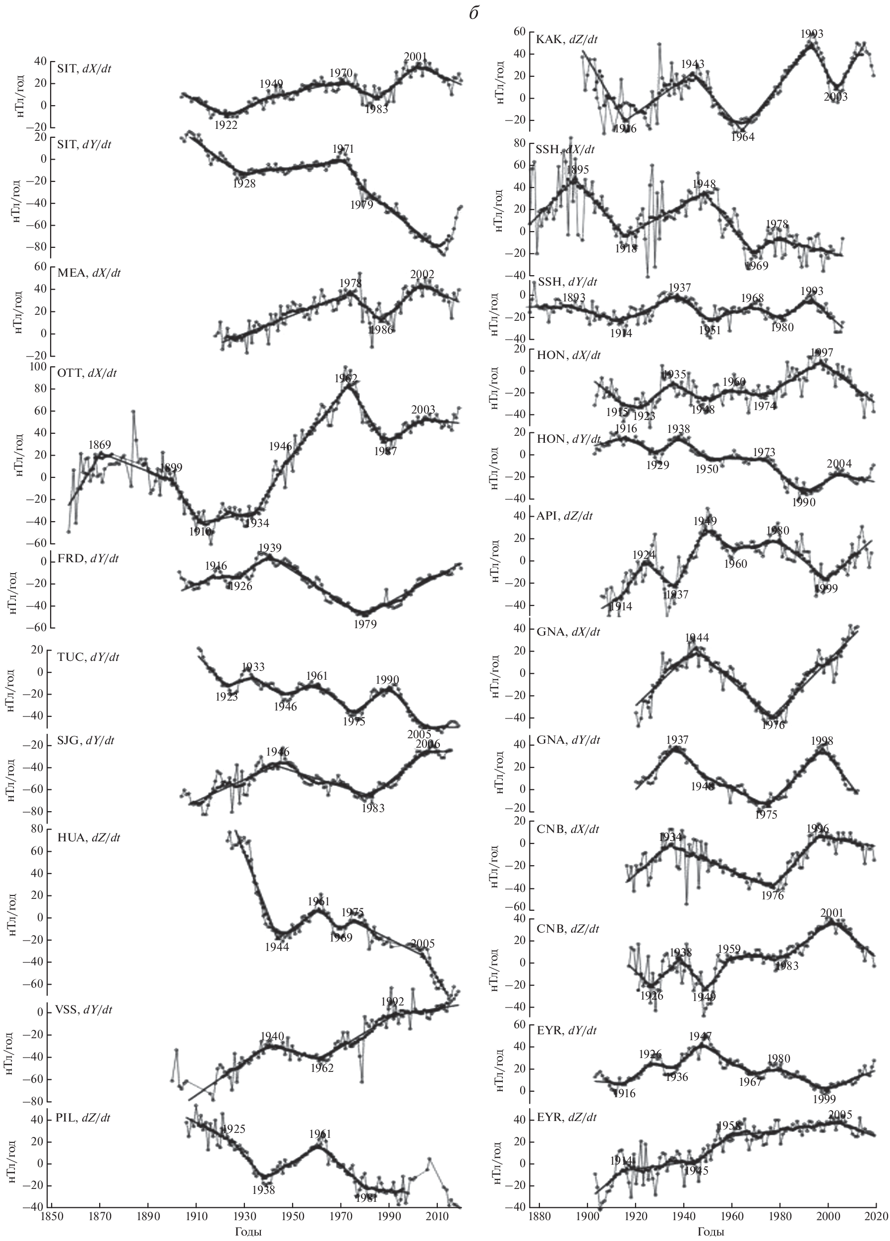 - − Cire C., Le Mouel J.L., Ducruix J. Evolution of the geomagnetic secular variation field from the beginning of the century // Nature. V. 307. P. 349–352. 1984.