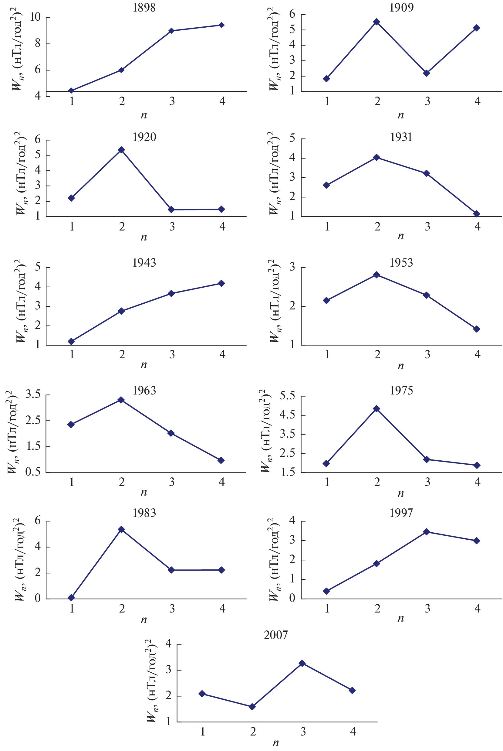 - − Soloviev A., Chulliat A., Bogoutdinov S. Detection of secular acceleration pulses from magnetic observatory data // Phys. Earth Planet. Inter. V. 270. P. 128–142. 2017