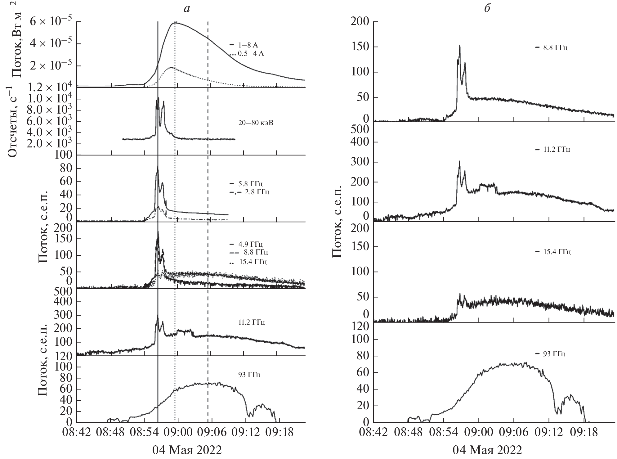 analysis of the time profiles of radiation in the X-ray and centimeter ranges showed that the millimeter emission
