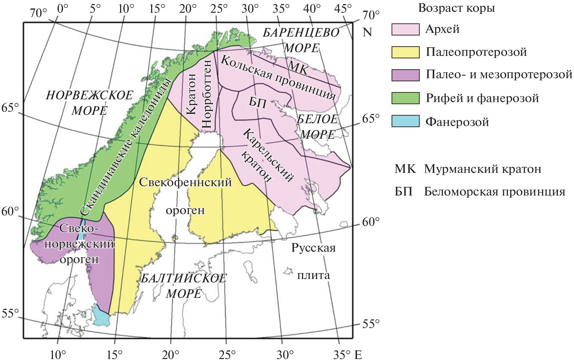 the Svecofennian orogen and the Norrbotten craton. The rest of the territory of the Baltic Shield is characterized
