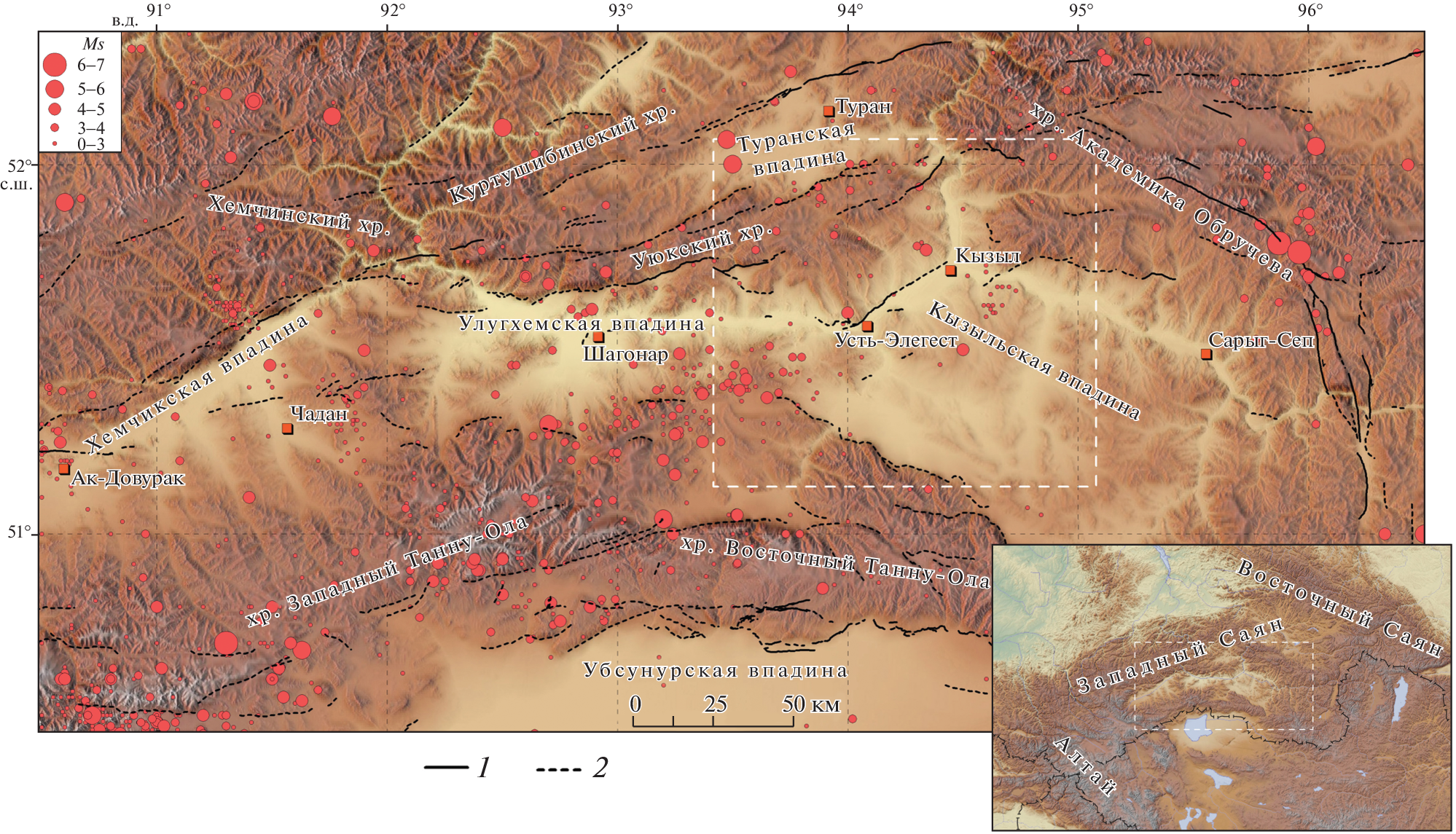 - Овсюченко А.Н., Бутанаев Ю.В., Мараханов А.В., Ларьков А.С., Новиков С.С., Кужугет К.С. О повторяемости сильных сейсмических событий в районе Тувинских землетрясений 2011–2012 гг. по данным палеосейсмологических исследований // Геология и геофизика. 2017. Т. 58. № 11. С. 1784–1793. https://doi.org/10.15372/GiG20171112