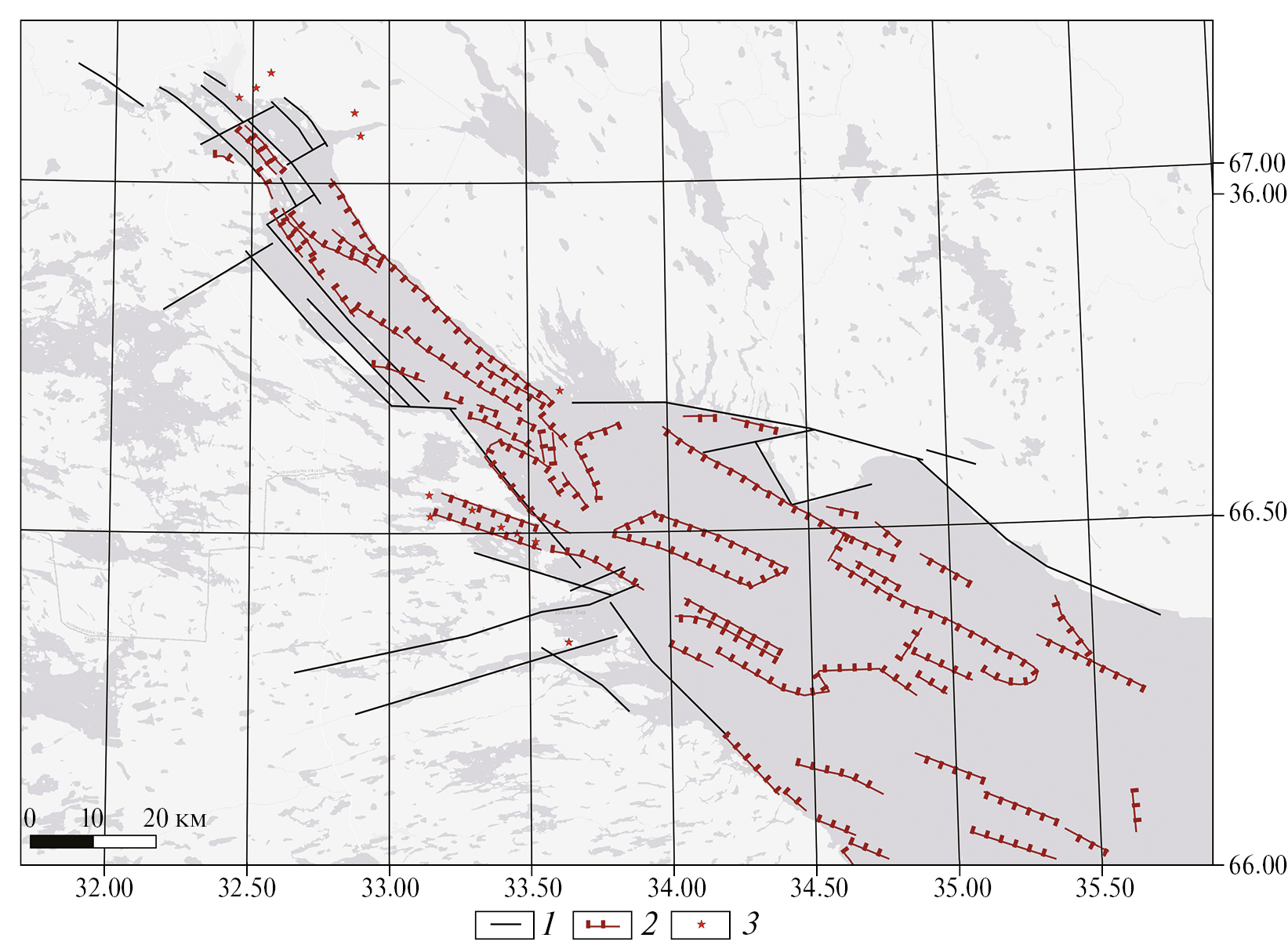 Благодарности. Авторы благодарят наших коллег С.В. Шварева (ИГ РАН, Москва, Россия), Л.Р. Семенову (ВСЕГЕИ, Санкт-Петербург, Россия) и Ю. А. Журавлева (ООО “МАГЭ”, Мурманск, Россия) за совместные исследования, в которых мы смогли по-новому подойти к исследованию структур, рассмотренных в статье.