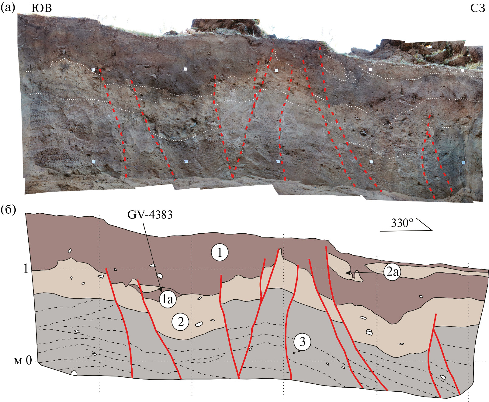 Мы интерпретировали их как последовательное наращивание общего смещения подвижкой при еще одном предыдущем сейсмическом событии. Общее смещение при семи выявленных событиях достигает ~39 м.