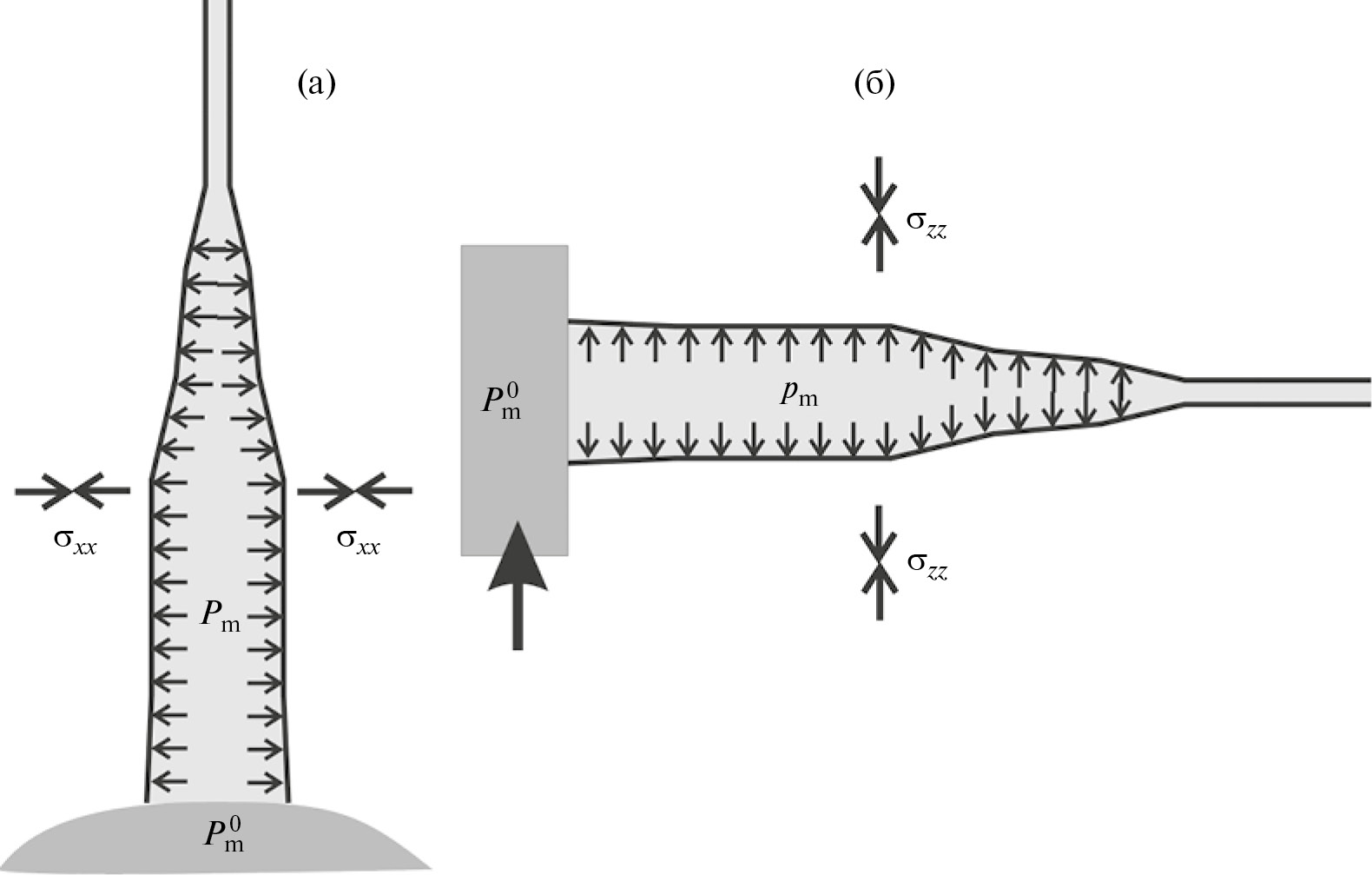 Целью настоящей статьи является установление закономерностей эволюции напряженного состояния коры в процессе магматизма и роли этих изменений в формировании внутрикоровых магматических очагов, а также интрузий различного типа (дайки, силлы, хонолиты) в верхней части осадочного чехла.