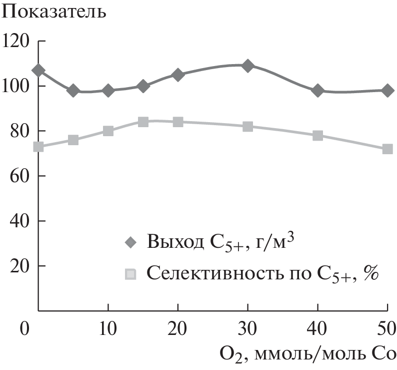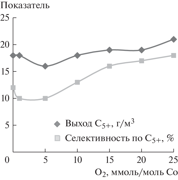 linear C5+ hydrocarbons. The observed effect can be explained by partial blocking of the sites of direct CO hydrogenation to methane and modification of Lewis acid sites. The data obtained were consistent with the concept of the two-center surface model of Co catalysts for the Fischer–Tropsch synthesis and the theory of astoichiometric components of catalytic reactions.