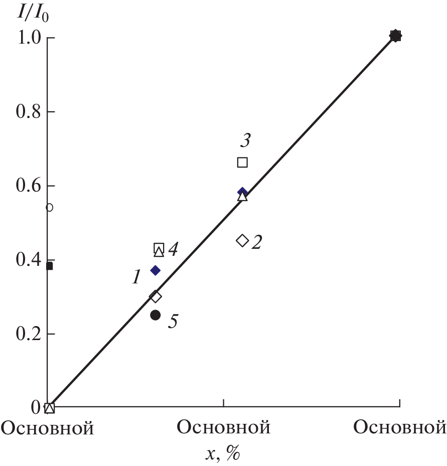 Изучено влияние гадолиния на люминесценцию европия в смешанных комплексах с теноилтрифторацетилацетоном и 1,10-фенантролином в пленках полиметилметакрилата и полиэтилена. Оценены масштабы изменения светостойкости при варьировании доли гадолиния и концентрации комплекса в полимере. Обнаружено усиление относительной интенсивности люминесценции в полиэтилене при увеличении доли гадолиния в комплексах, величина которого соответствует аналогичному эффекту для комплексов в кристаллическом состоянии. В пленках полиметилметакрилата этот эффект отсутствует, однако наличие гадолиния приводит к снижению скорости уменьшения интенсивности люминесценции при фотолизе.
