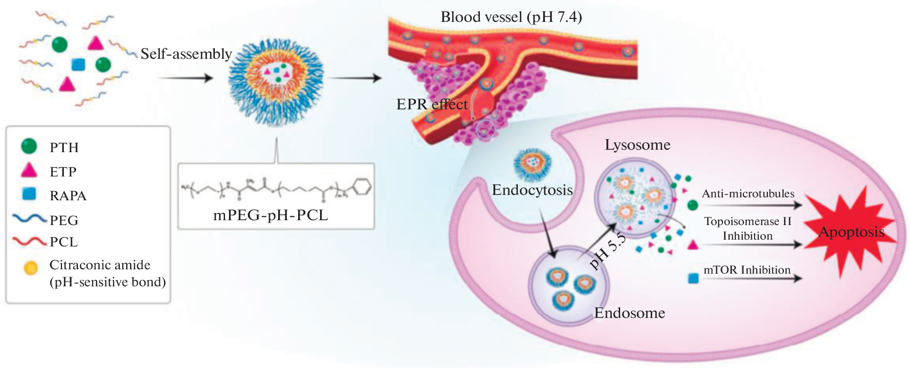 - Jo M.J., Shin H.J., Yoon M.S. et al. Evaluation of pH-sensitive polymeric micelles using citraconic amide bonds for the co-delivery of paclitaxel, etoposide, and rapamycin // Pharmaceutics. 2023. V. 15. № 1. P. 154. https://doi.org/10.3390/pharmaceutics15010154