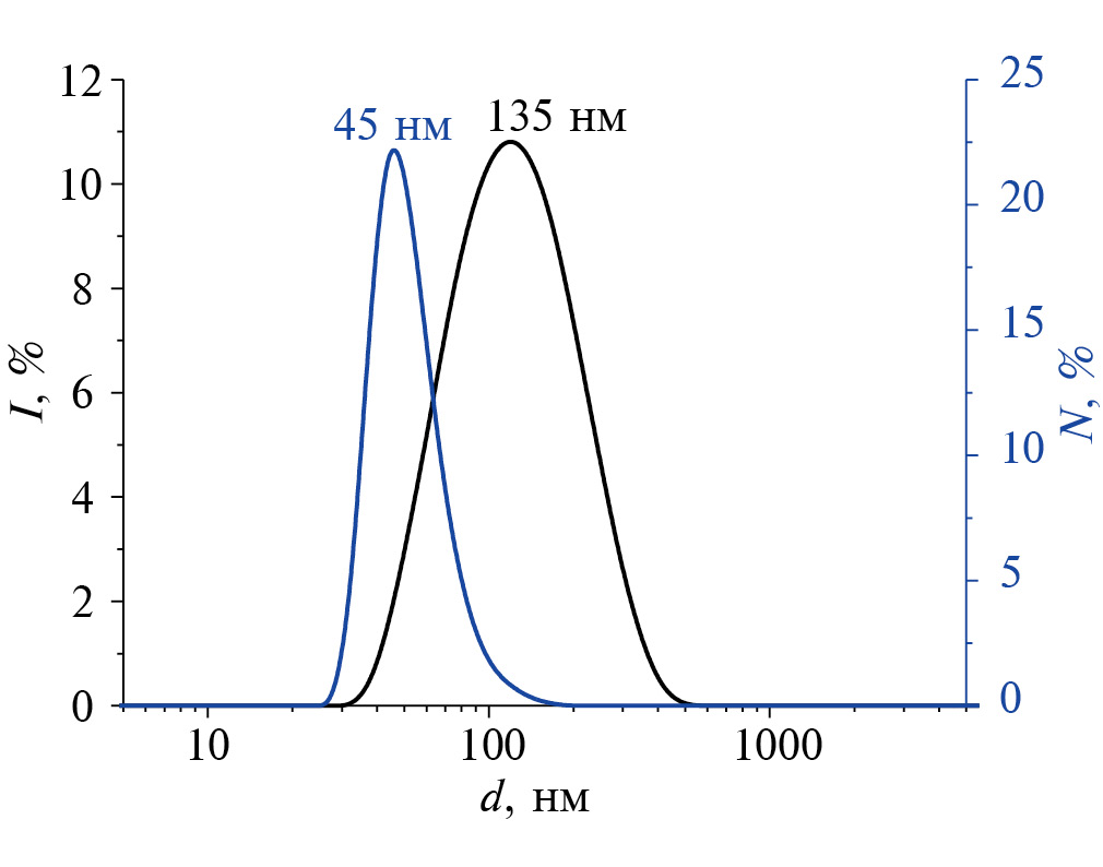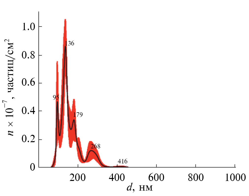 С помощью метода анализа траектории частиц на приборе NanoSight NS300 (Malvern, Великобритания) была определена частичная концентрация исходного разбавленного золя ДНА, а также получено распределение частиц по размерам.