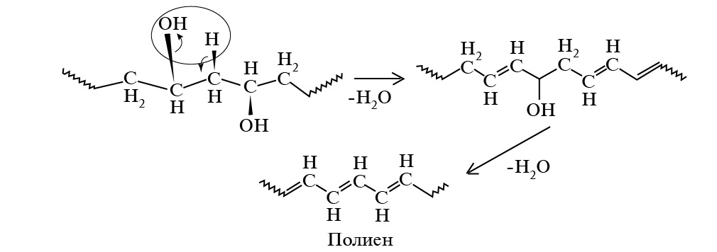 Рис. 4. Схема образования полиеновых структур из поливинилового спирта.