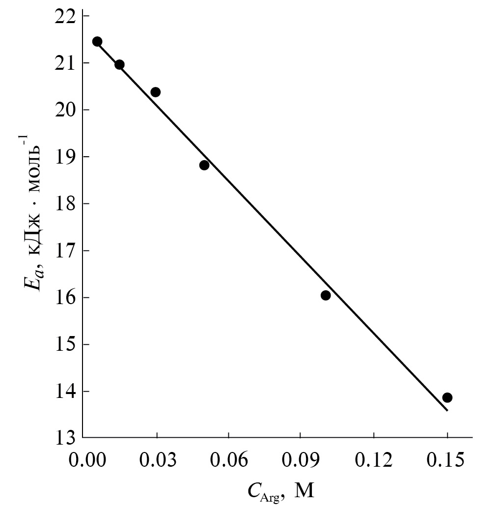 Рис. 5. Зависимость величины энергии активации процесса от концентрации L-аргинина.