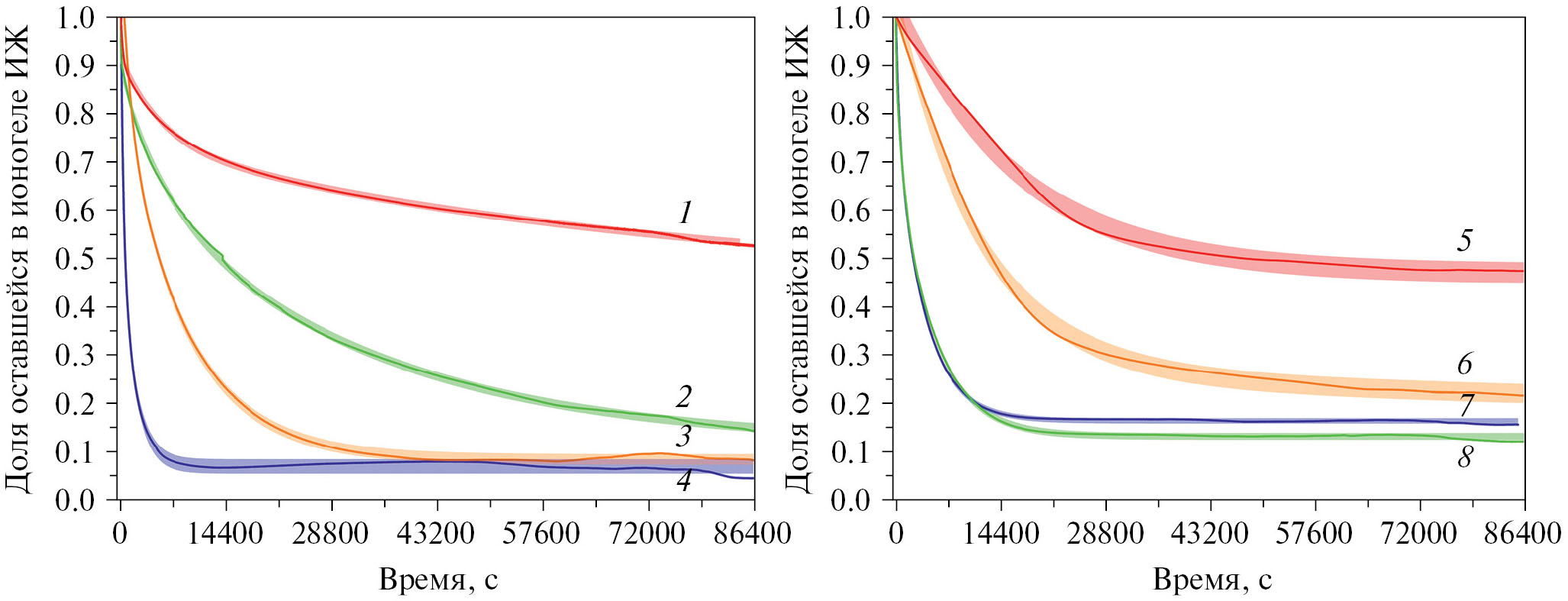 Иммобилизация ионных жидкостей в твердофазных пористых матрицах приводит к получению композитных материалов, называемых ионогелями [21–23]. Ключевым преимуществом ионогелей перед ионными жидкостями является способность сохранять определенную форму, что расширяет спектр возможных применений таких материалов. Как правило, материалы на основе ионогелей не меняют своих характеристик в течение длительного времени [24–29], они зачастую обладают высокой упругостью и эластичностью [30, 31] в сочетании со способностью к самозалечиванию [32]. В то же время наиболее перспективные области применения ионогелей (компоненты носимой электроники [33, 34] и микрофлюидных устройств [35–38], материалы для экстракции и разделения [25, 39], очистки воды [40, 41] и ее опреснения [39], подводных датчиков [42–44]) подразумевают их непосредственный контакт с парами воды или погружение в водную фазу. Такой контакт может приводить к вымыванию ионных жидкостей (даже имеющих крайне низкую растворимость в воде) из объема ионогелей и тем самым к существенному изменению их физико-химических и функциональных свойств. Несмотря на высокую вероятность такого процесса, особенности его протекания остаются практически неизученными.