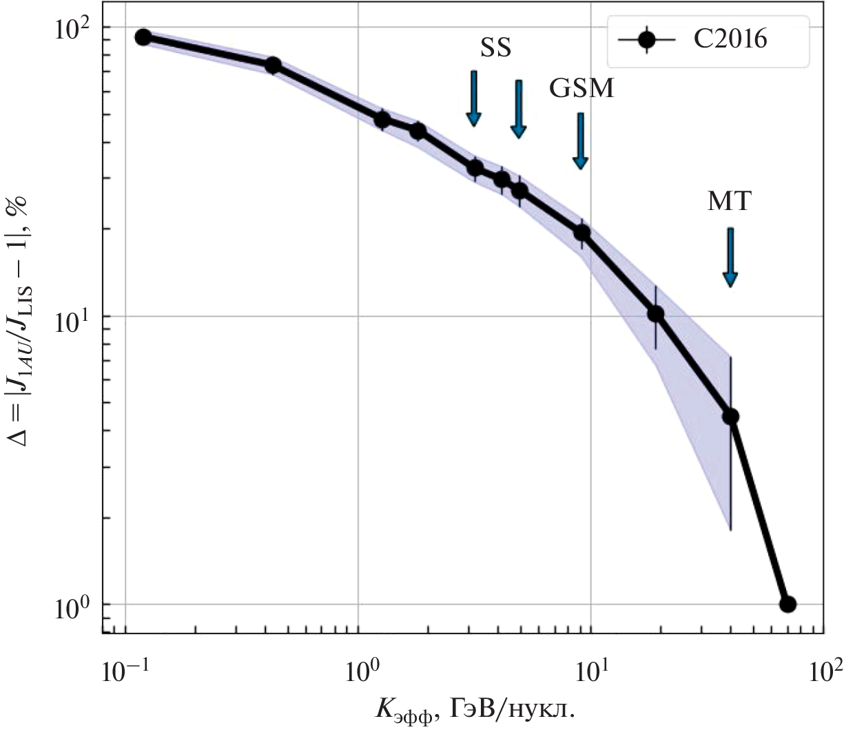 - Yanke V.G., Belov A.V., Gushchina R.T., Zirakashvili V.N. The rigidity spectrum of the long-term cosmic ray variations during solar activity cycles 19–24. Proc. 26th Extended ECRS + 35th RCRC, Salt Lake City, USA // J. Physics: Conference Series. 2019. V. 1181. P. 012007. https://doi.org/10.1088/1742-6596/1181/1/012007