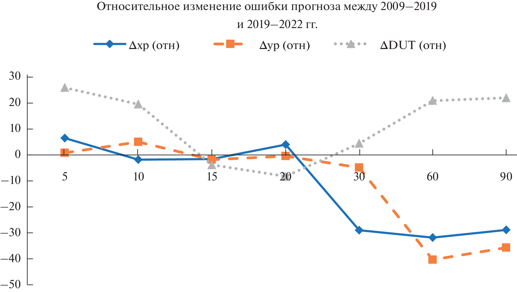 - Yang Y., Nie W., Xu T. et al. Earth orientation parameters prediction based on the hybrid SSA + LS + SVM model // Measurement Science and Technology. 2022. V. 33. Iss. 12.