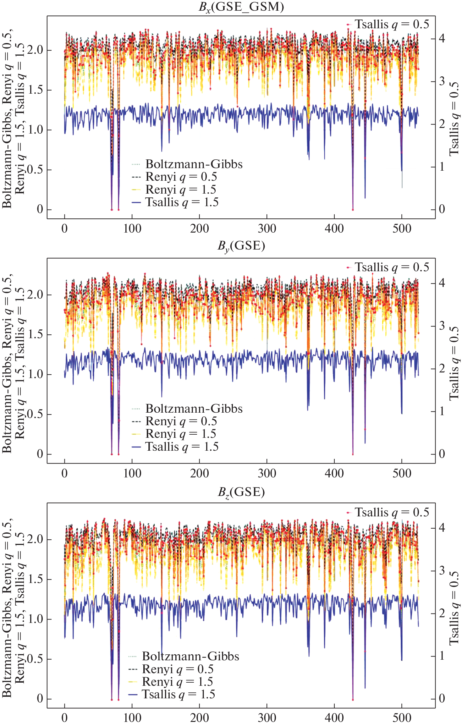 - Balasis G., Daglis I.A., Papadimitriou C. et al. Dynamical complexity in dst time series using non-extensive Tsallis entropy // Geophysical Research Letters. 2008. V. 35. Iss. 14.
