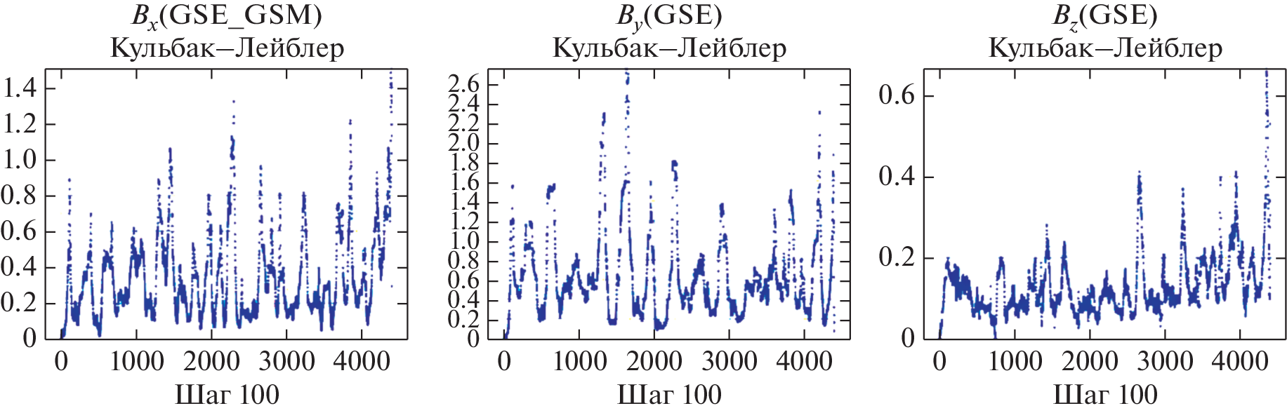 Обсуждаются результаты информационного анализа временных рядов спутникового мониторинга состояния межпланетного магнитного поля, предоставляемые базой данных Центра космических полетов Годдарда (англ. NASA Goddard Space Flight Center). В арсенале методов анализа основное внимание отводится контролю неэкстенсивных свойств при масштабировании временных выборок, создаваемых на основе временных рядов 2001–2022 гг. Демонстрируется перестройка модальности функции распределения вероятности для компонент межпланетного магнитного поля в рассматриваемом ансамбле реализаций. Представлены результаты реконструкции кинетики энтропийных мер Шеннона–Больцмана–Гиббса, Тсаллиса и Реньи. В неэкстенсивном приближении анализируется влияние q-деформации фазового пространства на стохастические режимы исследуемой системы. В работе впервые совместно исследуются кинетика информационного расхождения и кинетика энтропийных мер ансамбля реализаций значений межпланетного магнитного поля. Указывается необходимость согласования q-параметров деформации фазового пространства, опорной и контролируемой подсистем, в том числе, при использовании асимптотических приближений в методиках прогноза с применением нейросетевых алгоритмов и алгоритмов глубокого обучения.