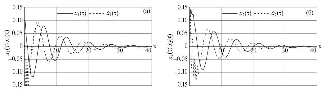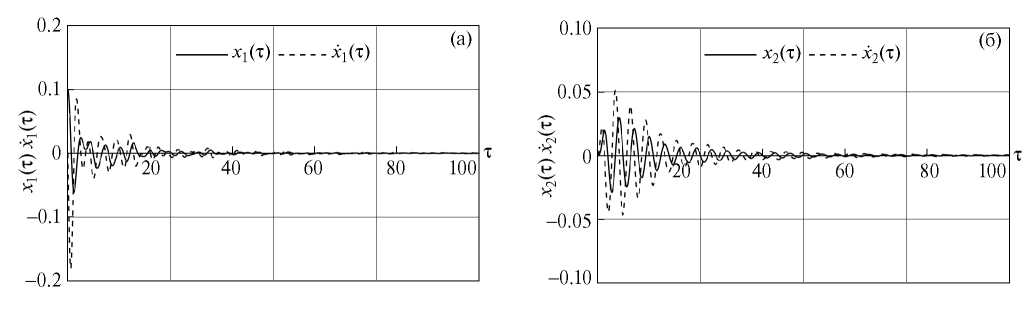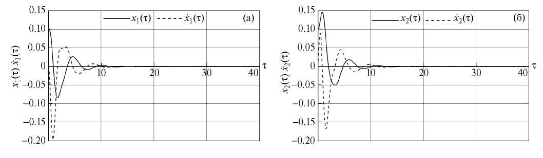 Цель приведенных ниже результатов моделирования — показать принципиальную применимость предложенных алгоритмов и продемонстрировать их работоспособность. Моделирование проводилось при помощи стандартного пакета Wolfram mathematica v11.0. Коэффициенты управления выбирались при помощи стандартной программы LQR для стационарных систем (7).