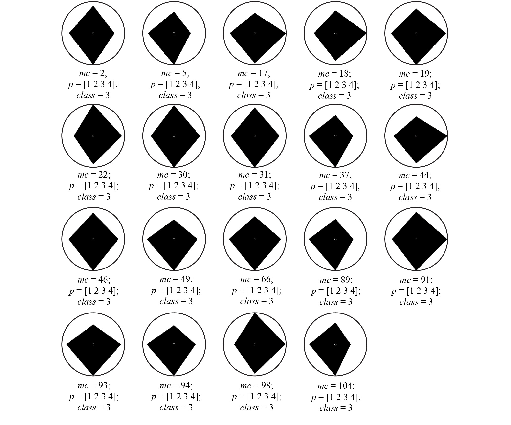 Визуальный осмотр результатов классифицирования в виде групп многоугольников (рис. 4–8) согласуется с выводами, предлагаемыми ИНС. Анализ полученных данных позволяет сформулировать следующие особенности полученных классов.