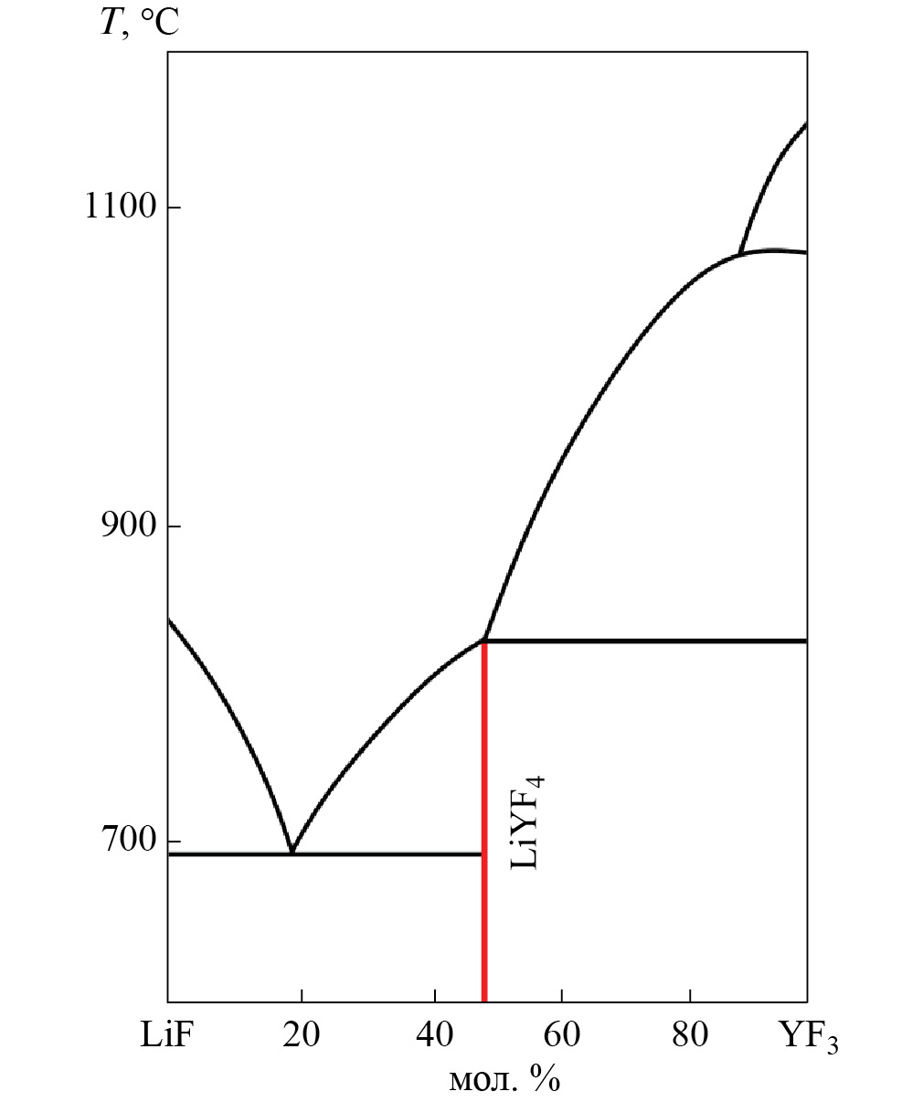 Рис. 1. Фазовая диаграмма двойной системы LiF–YF3 [18]