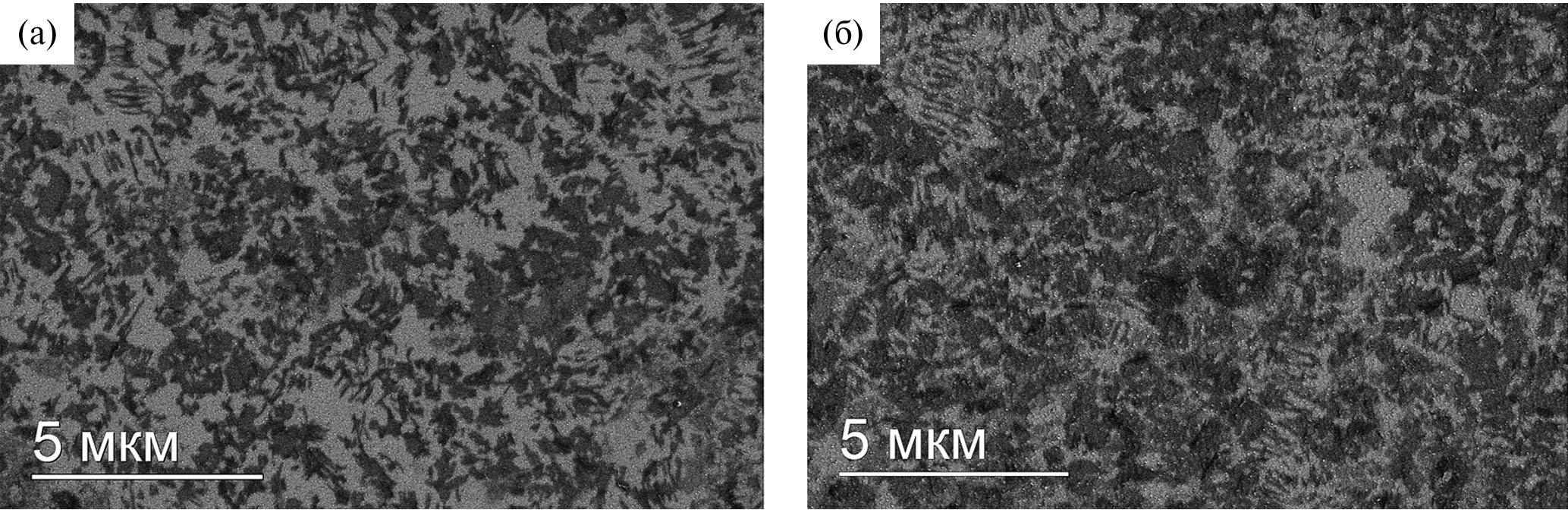 Рис. 4. СЭМ-изображения монослоя молекул несимметричного диина МеО–3–2 на поверхности Si подложек до (а) и после (б) 10 мин УФ-облучения.