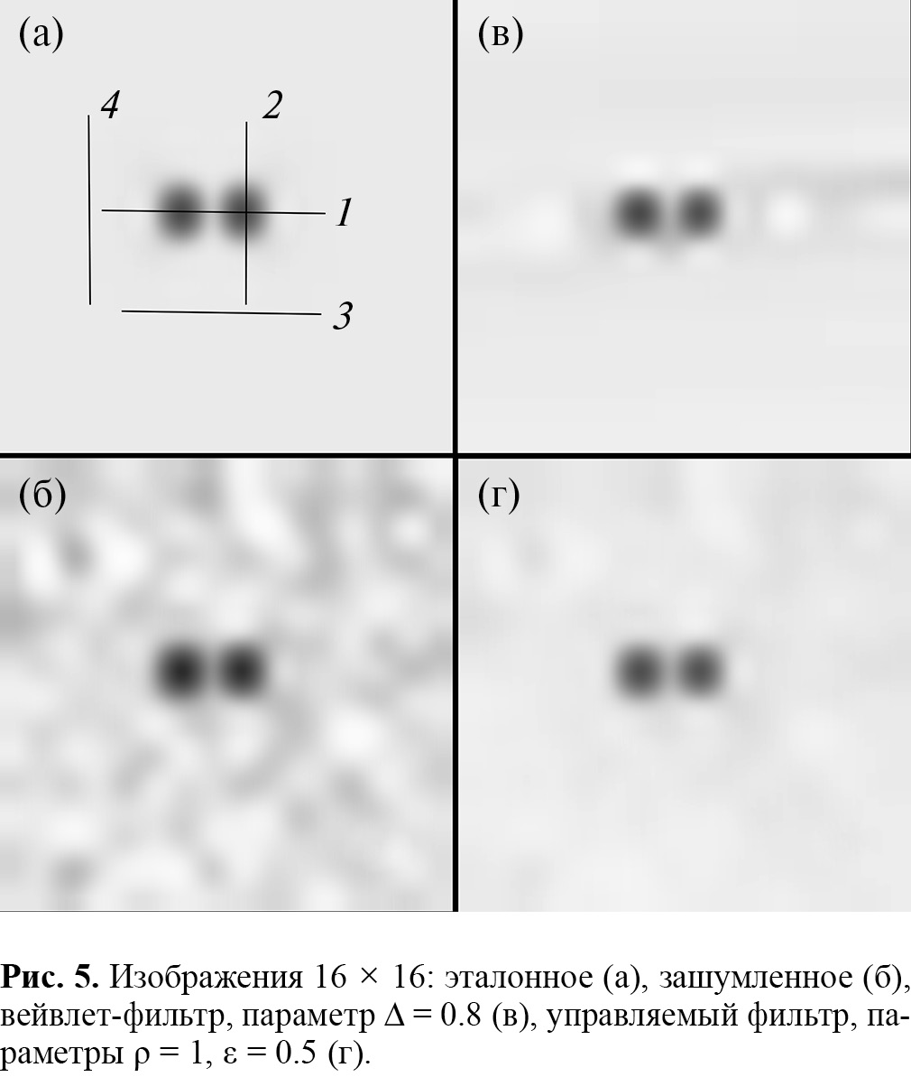 На рис. 5 показаны изображения 16 × 16 пикселей. Для снижения уровня шумовой составляющей были применены вейвлет- и управляемый фильтры соответственно (рис. 3).