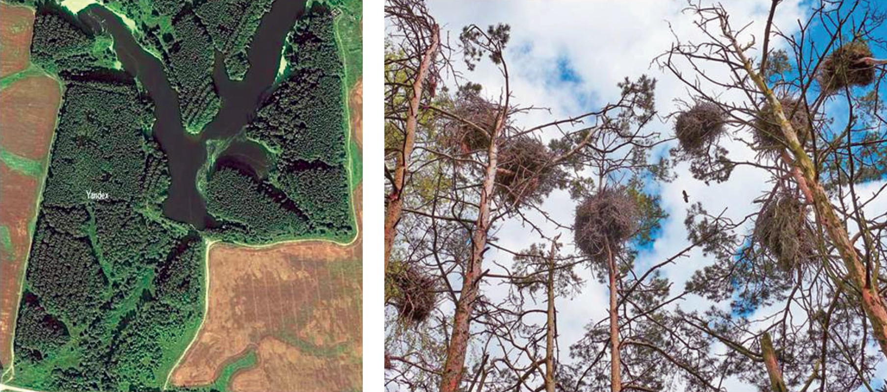 Data on the influence the grey heron (Ardea cinerea L., 1758) colonies have on the dynamics of tree ring parameters in pine plantations are presented. It is shown that the beginning of the stands colonisation by the grey heron can be quite accurately determined by analysing the dynamics of the annual tree rings parameters, especially the width of their late layer and the optical density of wood (the values of the former are lower in the control stand, and of the latter one are higher there). Grey heron colonies begin to appear in pine forests since as early as 10–12 years old, when the height of the trees reaches 5–6 m, and the diameter of the trunk at a height of 1.3 m from the soil surface is only 7–8 cm. In the first 15–20 years, they have a positive influence on the annual growth of trees, especially on the width of the late layer of wood and the thickness of the cell walls, but then the picture changes to the opposite. The total residence time of heron colonies in one place is about 35–40 years, after which they move to new places due to the forest stands coming into disarray or even facing complete destruction. To reduce the likelihood of the grey heron colonies appearance, which in many cases have a negative impact on the state of forest biogeocoenoses, it is necessary to stop creating pure pine forests near water bodies, giving preference to spruce, birch, poplar or linden-oak plantations.