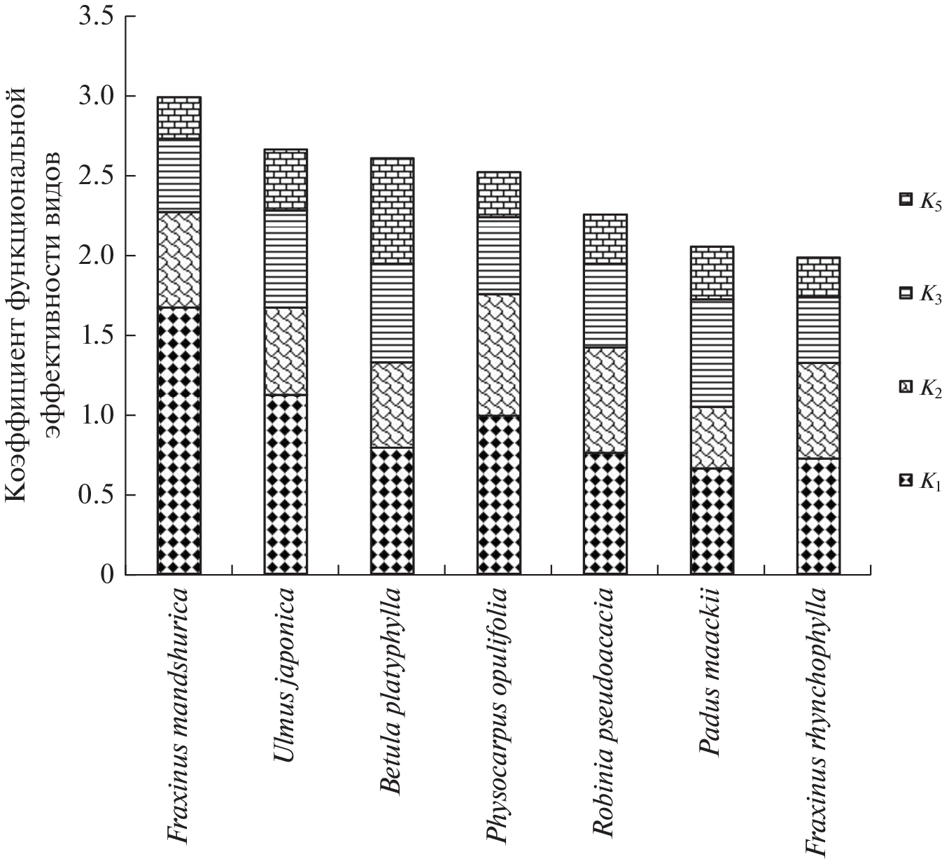 The article discusses the results of a comprehensive analysis of the ecological state and environment-stabilizing functions of the species composition of arboriflora in the urban planting structure. It’s based on a large amount of factual material obtained during the course of a long-term monitoring of Vladivostok’s urban greenery. A methodological substantiation has been developed for a comprehensive qualitative-quantitative assessment of species using the applied qualimetry techniques. An integral indicator, named the coefficient of the functional efficiency of the species (JFEC) was proposed as the main evaluation unit. It is a relative-quantitative magnitude of plants quality that characterises their functional efficiency and significance in urban ecosystems: prevalence in greenery planting, vitality, the ability for accumulation of the priority pollutant metals in the urban environment, their concentration relative to the local ecological background; the capability for accumulating metals from the soil. Comparative analysis of the functional efficiency of 80 species of trees and shrubs forming the urban greenery of Vladivostok on the basis of the proposed coefficient was carried out. Among the compared sample of plants, the JFEC decreases from 3.70 (Crataegus pinnatifida) to 1.13 (Malus mandshurica). This values measure up to 74 and 23% of the quality standard (QS), which corresponds to the ideal plant species. The groups of species of different functional significance in the urban green spaces structure have been identified. The best efficiency in creating the comfortable environmental conditions in the city was demonstrated by species widespread in landscaping: Fraxinus mandshurica, Ulmus japonica, Betula platyphylla, Physocarpus opulifolia et al. They are characterized by the maximum participation in the formation of the urban greenery structure and a high ability to absorb the main pollutants of the urban environment. The JFEC of these species is within 3.26–2.61, which corresponds to 65–52% of the QS. In conclusion, author makes a suggestion on a rational use of species for the formation of a comfortable urban environment and introduction of the results into the practice of managing the urban green fund.