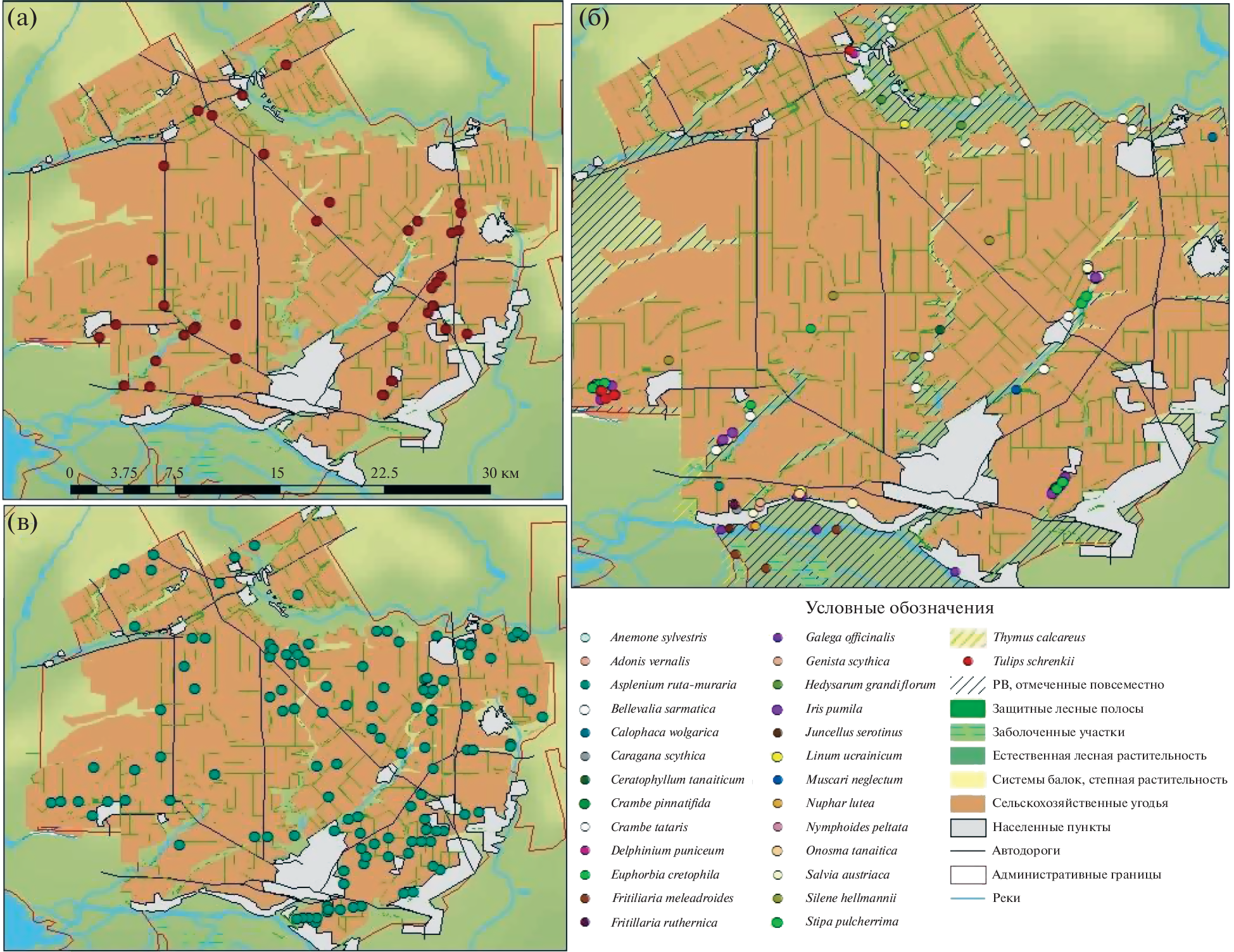 Studying the current state of protective forest plantations (PFP) not only in the Rostov region, but in the country as a whole, are necessary due to the deterioration of their sanitary condition, lack of care and restoration. Such events require large financial and physical (labour) investments. That is why the development of a simplified system for assessing the state of the PFP is of crucial importance. The article provides a brief history of the PFP creation, presents the results of the inventory of the PFP in the Myasnikovsky district using various research methods (geobotanical techniques), including remote sensing. In total, 62 geobotanical sites were established to assess the state of protective forest plantations in the area. The detailed route method was used to study and measure 858 shelter belts. The main type of the local PFP are field-protective ones, followed by the gully-side PFP almost twice as small in area, and finally the least prominent of all – roadside and garden-protective ones. The age of most of the PFPs has reached 55–60 years, and measures are needed to be taken for their reconstruction. All forest belts are characterised by the presence of various types of rubbish and sanitary cuttings taking place. In addition to assessing the state of the PFP, a classification of the shelter belts vegetation was carried out. Overall, 6 associations have been identified, including 3 new ones within the framework of 1 alliance, 1 order and 1 class. Within the study area, 30 new locations were identified for 8 plant species listed in the Red List of the Rostov Region (Red List …, 2014). The condition of the forest belts within the study area was assessed as satisfactory, however, there are areas of plantations that require restoration. Based on the information received, recommendations were given for the further management of the PFPs.