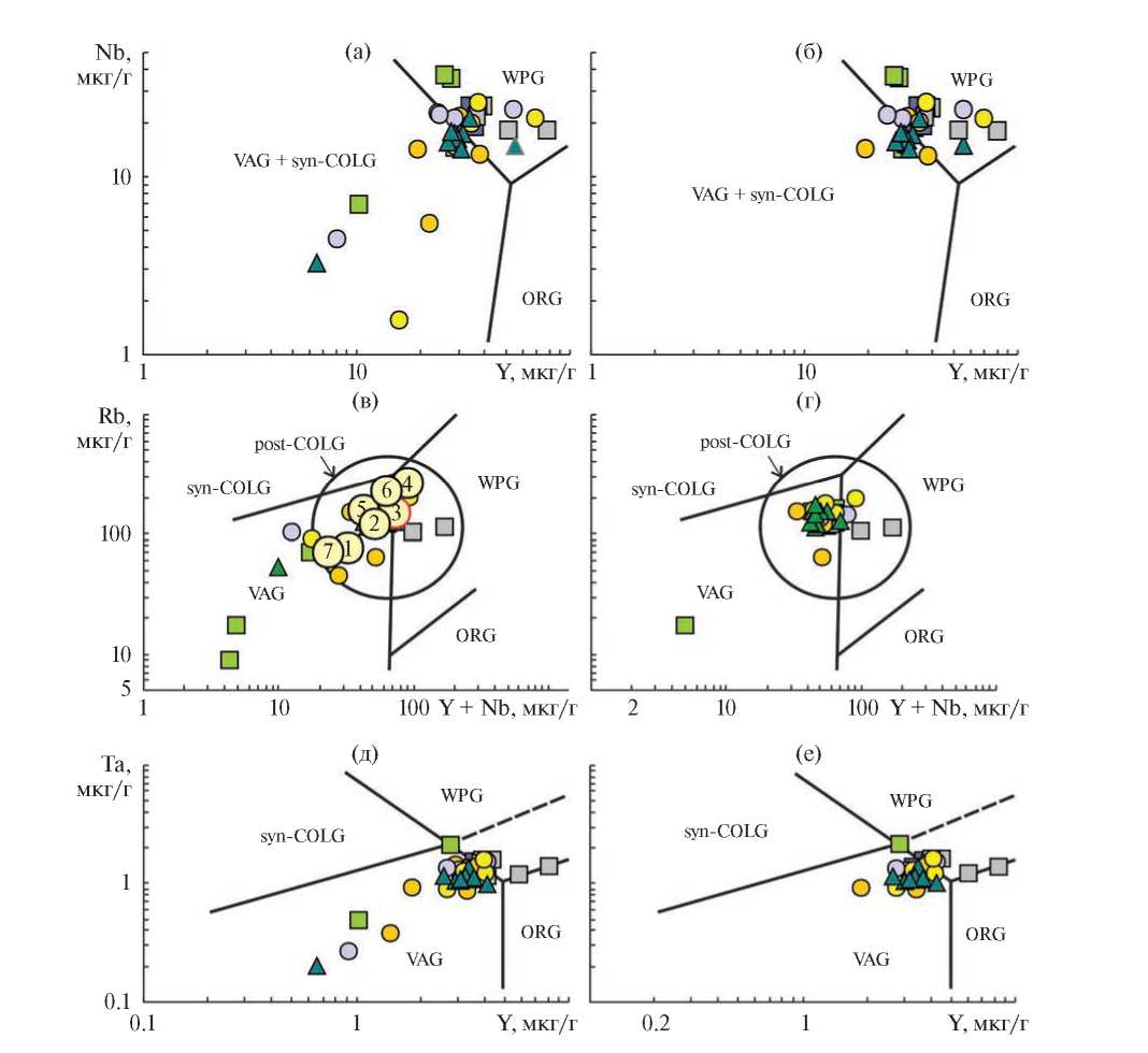 - Pearce J.A., Harris N.B.W., Tindle A.G. Trace element discrimination diagrams for the tectonic interpretation of granitic rocks // J. Petrol. 1984. V. 25. P. 956–983.